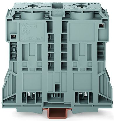 | Kurzbeschreibung | 2-Leiter-Durchgangsklemme,185 mm²,seitliche Beschriftungsaufnahmen,grau |