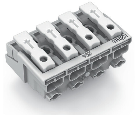 Leuchtenanschlussklemme; Drücker extern; ohne PE-Kontakt; 4-polig; Leuchtenseite: für eindrähtige Leiter; Inst.-Seite: für alle Leiterarten; max. 2,5 mm²; Umgebungstemperatur max. 85 °C (T85); weiß