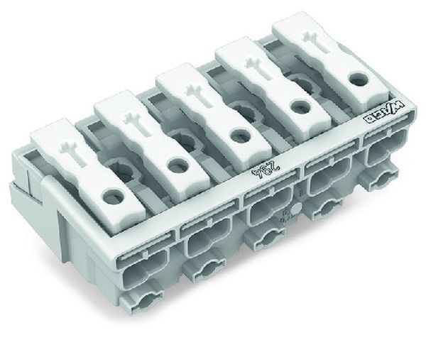 Leuchtenanschlussklemme; Drücker extern; ohne PE-Kontakt; 5-polig; Leuchtenseite: für eindrähtige Leiter; Inst.-Seite: für alle Leiterarten; max. 2,5 mm²; Umgebungstemperatur max. 85 °C (T85); weiß