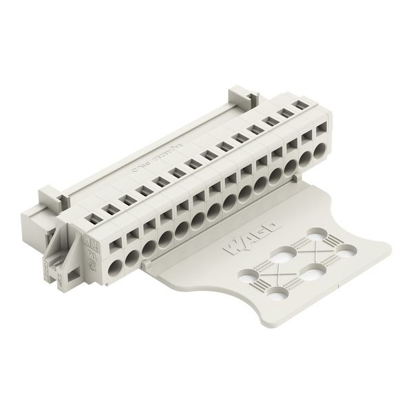 1-Leiter-Stiftleiste; CAGE CLAMP®; 2,5 mm²; Rastermaß 5 mm; 14-polig; 100% fehlsteckgeschützt; Befestigungflansch; Zugentlastungsplatte; 2,50 mm²; lichtgrau