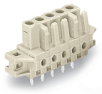 THT-Federleiste; gerade; Rastermaß 5 mm; 3-polig; 100% fehlsteckgeschützt; Befestigungflansch; Lötstift 0,6 x 1,0 mm; lichtgrau