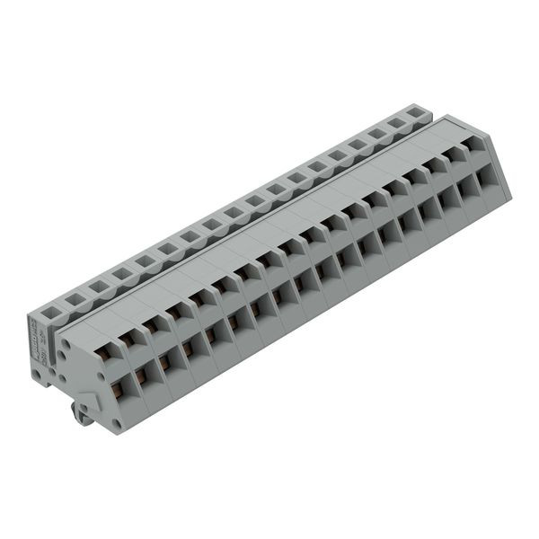 1-Leiter Federleiste, abgewinkelt; CAGE CLAMP®; 2,5 mm²; Rastermaß 5 mm; 18-polig; Rastfüße; 2,50 mm²; grau