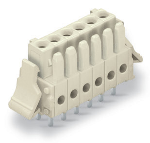 THT-Federleiste; gerade; Rastermaß 3,5 mm; 3-polig; 100% fehlsteckgeschützt; Verriegelungsklinke; Lötstift 0,9 x 0,9 mm; lichtgrau