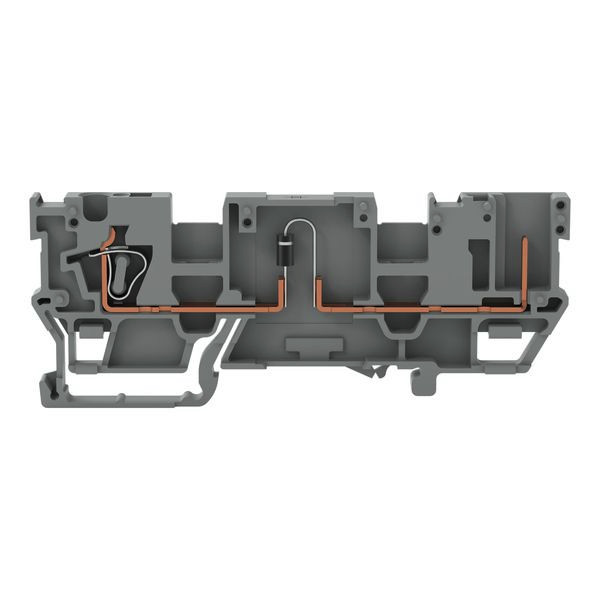 1-Leiter/1-Pin-Bauelement-Basisklemme; mit 2-fach-Querbrückung; mit Diode 1N4007; Anode links; für Tragschiene 35 x 15 und 35 x 7,5; 4 mm²; CAGE CLAMP®; grau