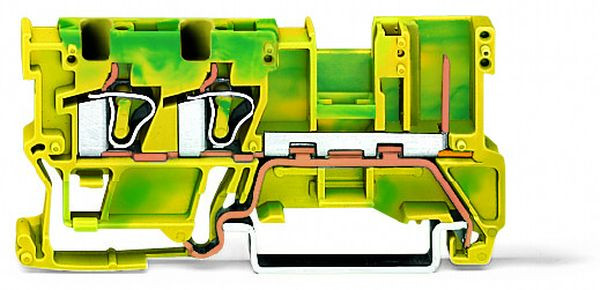 2-Leiter/1-Pin-PE-Basisklemme; 4 mm²; für Tragschiene 35 x 15 und 35 x 7,5; CAGE CLAMP®; 4,00 mm²; grün-gelb