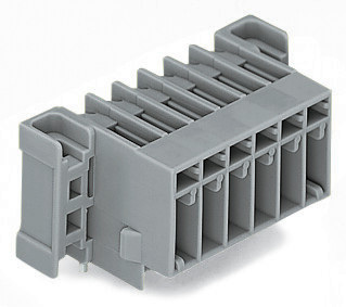| Kurzbeschreibung | Male connector with angled solder pins Horizontal PCB mounting gray |