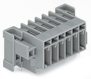 | Kurzbeschreibung | Male connector with angled solder pins Horizontal PCB mounting gray |