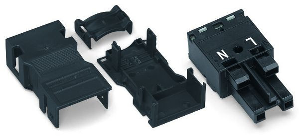| Kurzbeschreibung | Socket with strain relief housing 2-pole black |