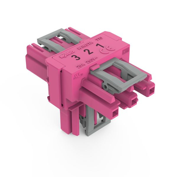 T-Verteiler; 3-polig; Kod. B; 1 Eingang; 2 Ausgänge; 3 Verriegelungsklinken; für fliegende Verbindungen; pink