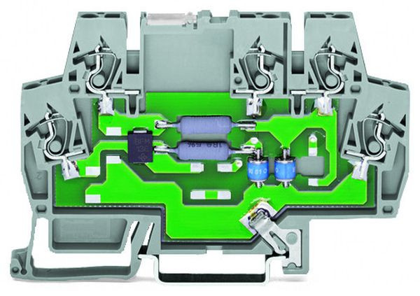 Ein Überspannungsschutz ist auch in der Reihenklemme für Tragschiene 35 möglich. Nur 6 mm schmale, mehrstufige Ableiter in Reihenklemmenform der Serie 792-80x sorgen für einen platzsparenden, kostengünstigen Schutz von Steuerungs- und Bustechnik, z. B. LON®-Netzwerk, PROFIBUS-Netzwerk, Binärsignale etc.