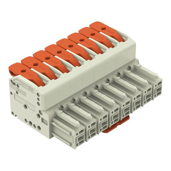 1-Leiter-Federleiste; Hebel; Push-in CAGE CLAMP®; 10 mm²; Rastermaß 7,62 mm; 8-polig; 100% fehlsteckgeschützt; mittige Verriegelungsklinke; 10,00 mm²; lichtgrau