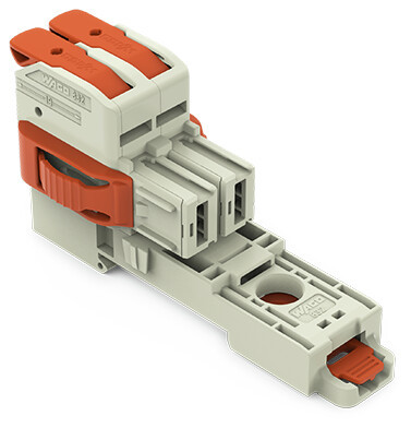 1-Leiter-Federleiste; Hebel; Push-in CAGE CLAMP®; 16 mm²; Rastermaß 10,16 mm; 2-polig; 100% fehlsteckgeschützt; seitliche Verriegelungsklinken; TS 35/Oberflächenmontage; versilberte Kontakte; 16,00 mm²; lichtgrau