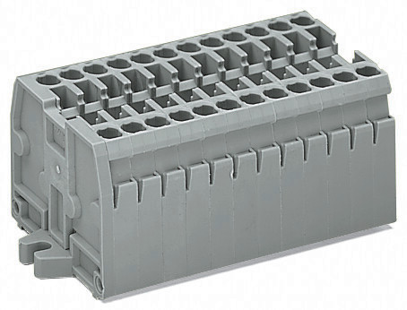 2-Leiter-Klemmenleiste; ohne Drücker; mit Befestigungsflanschen M3; 10-polig; für Schraub- u.ä. Befestigungsarten; Befestigungsloch Ø 3,2 mm; 2,5 mm²; CAGE CLAMP®; grau