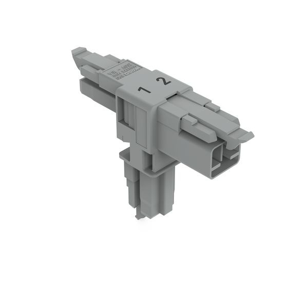 T-Verteiler; 2-polig; Kod. B; 1 Eingang; 2 Ausgänge; 3 Verriegelungsklinken; für fliegende Verbindungen; grau
