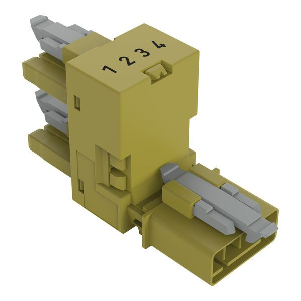 h-Verteiler; 4-polig; Kod. B; 1 Eingang; 2 Ausgänge; einseitige Abgänge; 3 Verriegelungsklinken; für fliegende Verbindungen; hellgrün