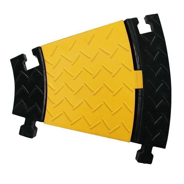 WALTHER Kabelbrücke 5K Bogen 30° aus Vollgummi Farbe: schwarz/gelbGröße: 470 x 440 x 50mm (BxH)Achslast bis 9tVerbindungs-Zapfen integriert: JA5 Kanal:5-mal 35 x 35mmunbeschränkt verlängerbarsehr stabil und verrutschsicher auch auf unebenen oder glatten Flächen