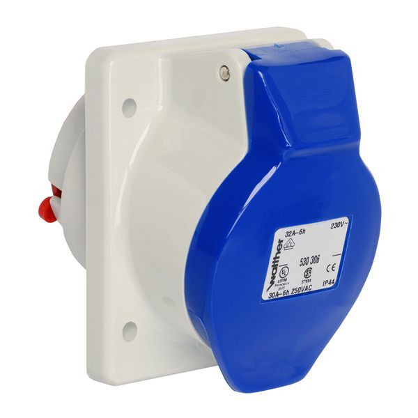 mit Flansch WALTHER Anbaudose 32A 3P 230V 6h IP44 schräg aus PA6-Material fingersicher nach BGV A3 mit weichem Übergangsradius von Flansch auf Kragen Flanschmaß 90x75mm Befestigungsmaß 60x60mm