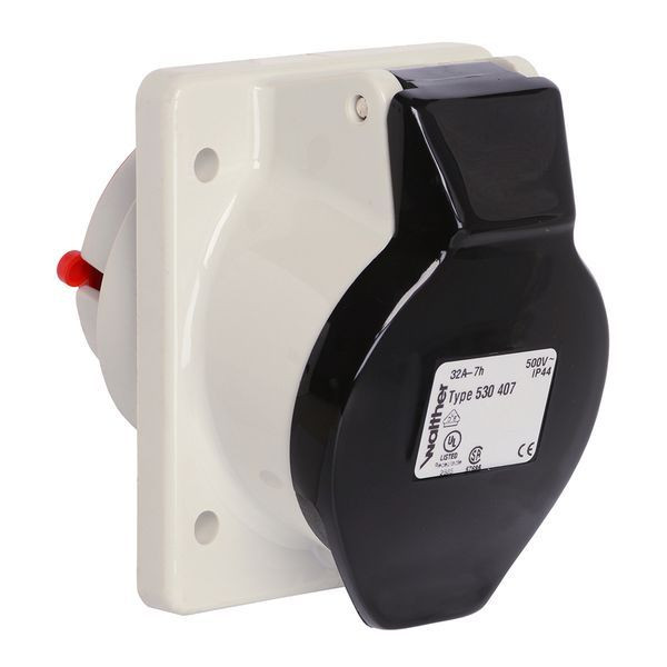 | Kurzbeschreibung | Panel socket angled 32A 4P 7h with flange 90x75mm |