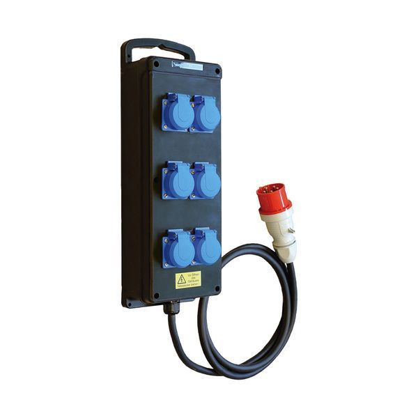 | Kurzbeschreibung | Tragbare Vollgummi-Steckdosenleiste In: 16A mit 6 Schukos und Anschluss über Leitung mit 16A Stecker |