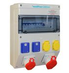 | Kurzbeschreibung | Kunststoff-Steckdosenkombination In: 40A mit einem RCD TypA, 4 MCBs, 2 CEE-Abgänge 16-32A, 2 Schukos, 2 RJ45 und Klemmsatz K25 10P |