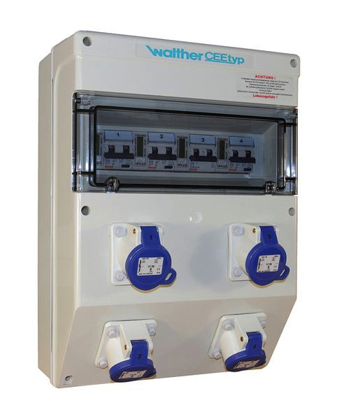| Kurzbeschreibung | Kunststoff-Steckdosenkombination In: 32A mit 4 RCBO, 4 CEE-Abgänge 16A, 4 elektronischen WS-Zähler und Klemmsatz K25 10P |