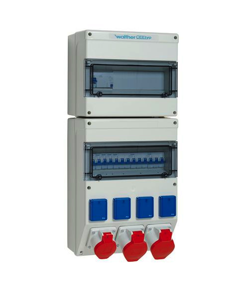 | Kurzbeschreibung | Plastic socket combination In: 63A with one RCD Type A, seven MCBs Type C and Type B, three CEE outlets 16-32A, four Schuko sockets and terminal set K25 10P |