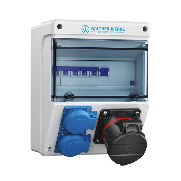 | Kurzbeschreibung | Kunststoff-Steckdosenkombination In: 32A mit 3 MCB's, einem NEO CEE-Abgang 16A, 2 Schukos und Anschluss bis 25qmm 10P |