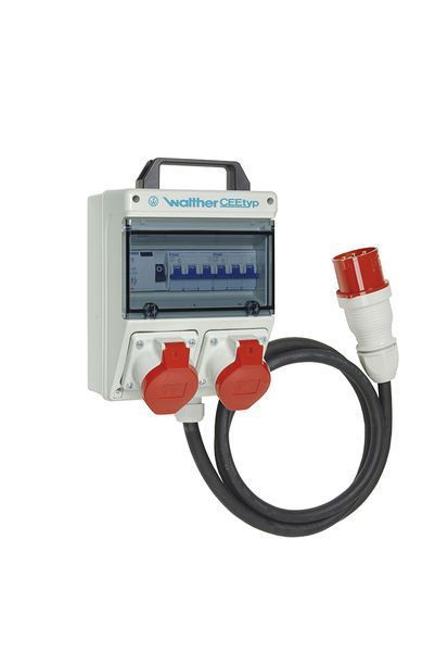 | Kurzbeschreibung | Plastic socket combination In: 32A with one RCD Type A, two MCBs, two CEE outlets 16A and connection via cable with 32A plug |