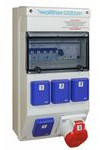 | Kurzbeschreibung | Kunststoff-Steckdosenkombination In: 32A mit einem RCD TypA, 3 MCBs, einem CEE-Abgang 16A, 4 Schukos und Klemmsatz K25 10P |