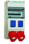 | Kurzbeschreibung | Kunststoff-Steckdosenkombination In: 63A mit 4 MCBs TypC u. TypB, 2 CEE-Abgänge 32A, 2 Schukos und Klemmsatz K25 10P |