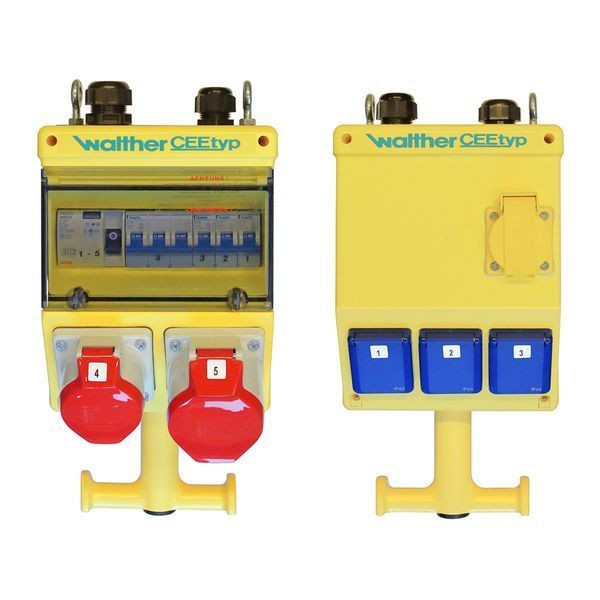 | Kurzbeschreibung | Plastic suspension-type combination In: 32A with one RCD Type A, four MCBs, two CEE outlets 16-32A, three Schuko sockets, one RJ45 and connection up to 25 qmm 5P |