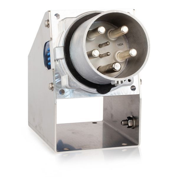 | Kurzbeschreibung | CEE Hochstrom Wandgerätestecker schräg 160A 5P 6h IP67 D-Line mit Schraubanschluss und eienr Kabeleinführung oben |