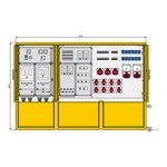 | Kurzbeschreibung | Industrie- und Marktplatzverteiler mit einem Wandlersatz 630/5A, 10 RCDs TypA, 20 LS, 13 CEE-Abgängen 16-125A und 12 Schukos |