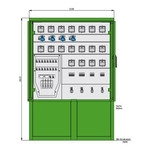 | Kurzbeschreibung | Stromverteiler für Freizeitanlagen mit 18 RCDs TypA, 18 LS, 18 mechanische WS-Zählern, 4 CEE-Abgängen 16A und 14 Abgangsklemmen |