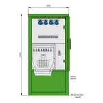 | Kurzbeschreibung | Stromverteiler für Freizeitanlagen mit 8 RCDs TypA, 8 LS, 8 elektron. WS-Zählern, 4 CEE-Abgängen 16A und 4 Abgangsklemmen |