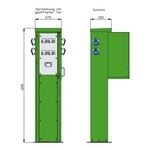 | Kurzbeschreibung | Energiesäule für Freizeitanlagen mit 4 RCDs TypA, 4 LS, 4 elektron. WS-Zählern und 4 CEE-Abgängen 16A |