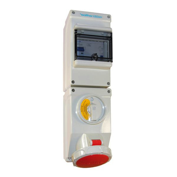 | Kurzbeschreibung | Wasserdichte Wandsteckdose 32A 5P 6h mit 2-poligem Ausschalter , FI-Schalter und mechanischer Verriegelung |