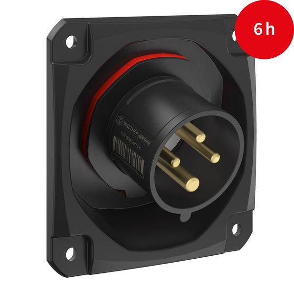 WALTHER CEE NEO Anbaugerätestecker schräg mit schraubenloser Anschlusstechnik (Käfigzugfeder-Technik) 16A 4P 6h 400V IP54 mit Farbringcodierung "rot" Gehäuse aus PA6-Material mit hoch wärmebeständigem Kontaktträger aus PA66-Material Schutz gegen direktes Berühren nach DGUV V3Flanschmaß 110x110mmBefestigungsmaß 90x90mm