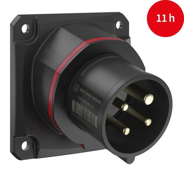 WALTHER CEE NEO Anbaugerätestecker schräg mit schraubenloser Anschlusstechnik (Käfigzugfeder-Technik) 16A 4P 11h 440V 60Hz IP54 mit Farbringcodierung "rot" Gehäuse aus PA6-Material mit hoch wärmebeständigem Kontaktträger aus PA66-Material Schutz gegen direktes Berühren nach DGUV V3Flanschmaß 86x86mmBefestigungsmaß 69,5x69,5mm