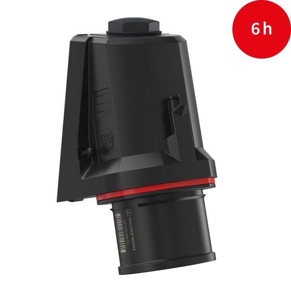 WALTHER CEE NEO Wandgerätestecker schräg mit schraubenloser Anschlusstechnik (Käfigzugfeder-Technik) 32A 5P 6h 400V IP54 mit Farbringcodierung "rot" Gehäuse aus PA6-Material mit hoch wärmebeständigem Kontaktträger aus PA66-Material mit einer teilbaren Kabeleinführung M32 oben und einer ausbrechbaren Kabeleinführung M25 hintenzur Innenbefestigung