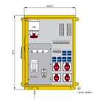 | Kurzbeschreibung | Aufputzverteiler 69kVA mit 3 RCDs TypA, 10 LS, 5 CEE-Abgängen 16-63A und 6 Schukos |