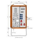 | Kurzbeschreibung | Anschlussverteilerschrank 44kVA mit Zählerplatz -Luxemburg-,1 RCD TypB und 1 RCD TypA, 3 CEE-Abgängen 16-32A und 6 Schukos |