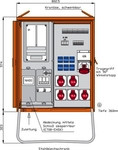 | Kurzbeschreibung | Anschlussverteilerschrank 44kVA mit Zählerplatz -Österreich-, NH-Zugang absperrbar, RCD TypA, 11 LS, 6 CEE-Abgängen 16-63A und 6 Schukos |