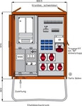 | Kurzbeschreibung | Anschlussverteilerschrank 44kVA mit Zählerplatz -Österreich-, NH-Abgang, 2 RCDs TypA, 11 LS, 6 CEE-Abgängen 16-63A und 6 Schukos |