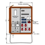 | Kurzbeschreibung | Anschlussverteilerschrank 55kVA mit Zählerplatz, RCD Typ B, 12 LS, 6 CEE-Abgänge 16-63A und 6 Schukos |