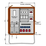 | Kurzbeschreibung | Anschlussverteilerschrank 69kVA mit Zählerplatz, 3 RCDs Typ B, 10 LS, 6 CEE-Abgänge 16-63A und 6 Schukos |