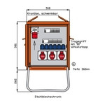 | Kurzbeschreibung | Endverteiler 22kVA mit Anbaugerätestecker 32A als Phasenwender, RCD Typ B und RCD Typ A, 9 LS, 3 CEE-Abgänge 16-32A und 6 Schukos |