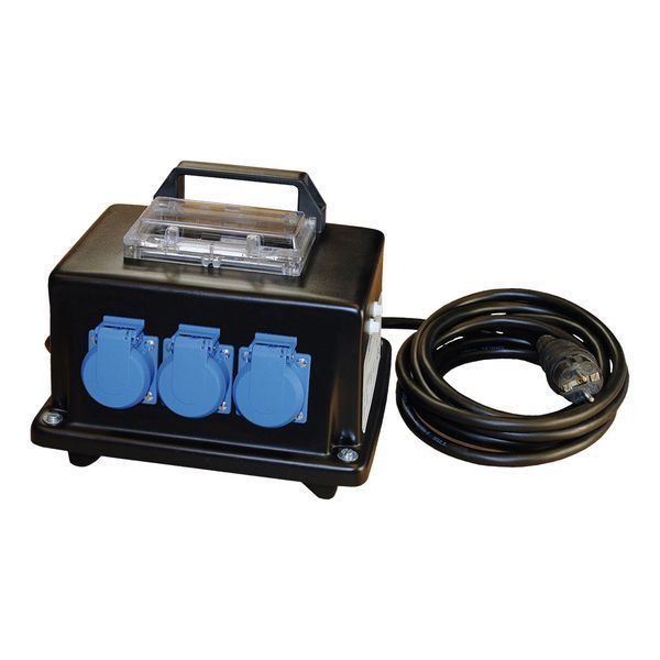 | Kurzbeschreibung | Endverteiler aus Hart-Polyäthylen 3,7kVA mit Schuko-Leitung als Zugang, einem RCD -A- und 6 Schukos |