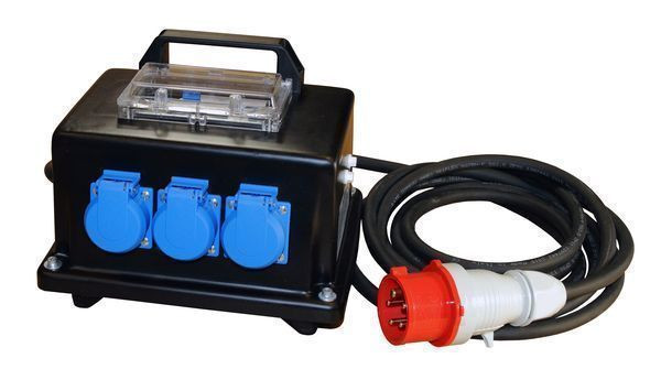 | Kurzbeschreibung | Endverteiler aus Hart-Polyäthylen 11kVA mit 16A CEE-Leitung als Zugang, einem RCD -B- und 6 Schukos |