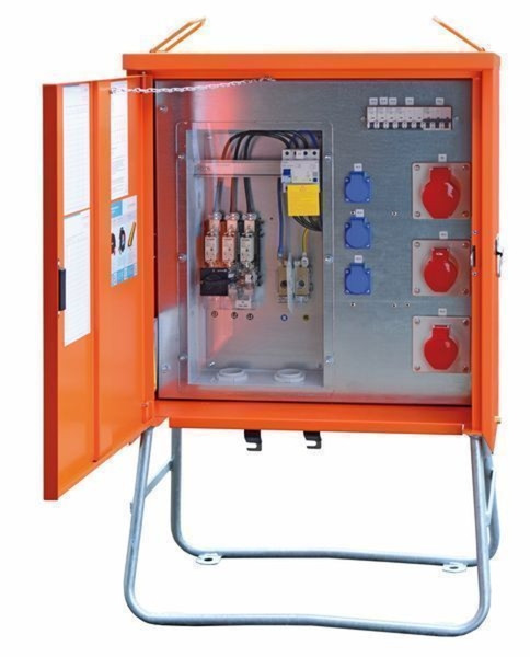 | Kurzbeschreibung | Verteilerschrank 22kVA mit RCD Typ B, 5 LS, 3 CEE-Abgänge 16-32A und 3 Schukos |